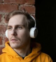 A workspace featuring a computer monitor displaying code, an open laptop showing a design interface, and a stack of books related to programming and design. The environment includes a keyboard, a mouse, sticky notes, and a potted plant, creating a tech-savvy and organized atmosphere.